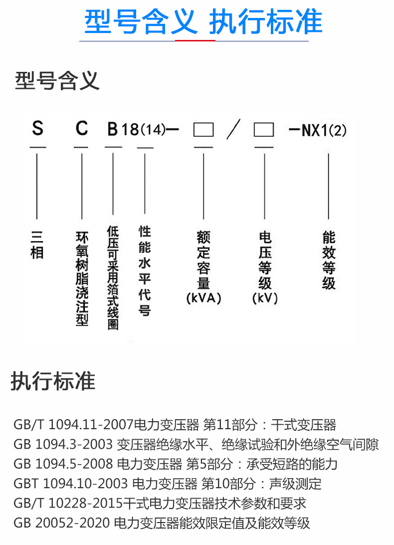 )kV-NX2,其中kVA表示變壓器容量,kV表示變壓器額定電壓,NX2符號(hào)表示二級(jí)能效變壓器。